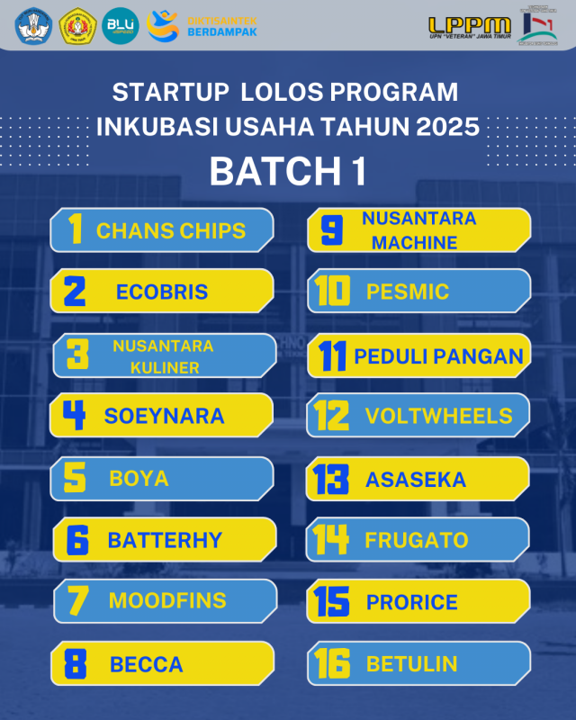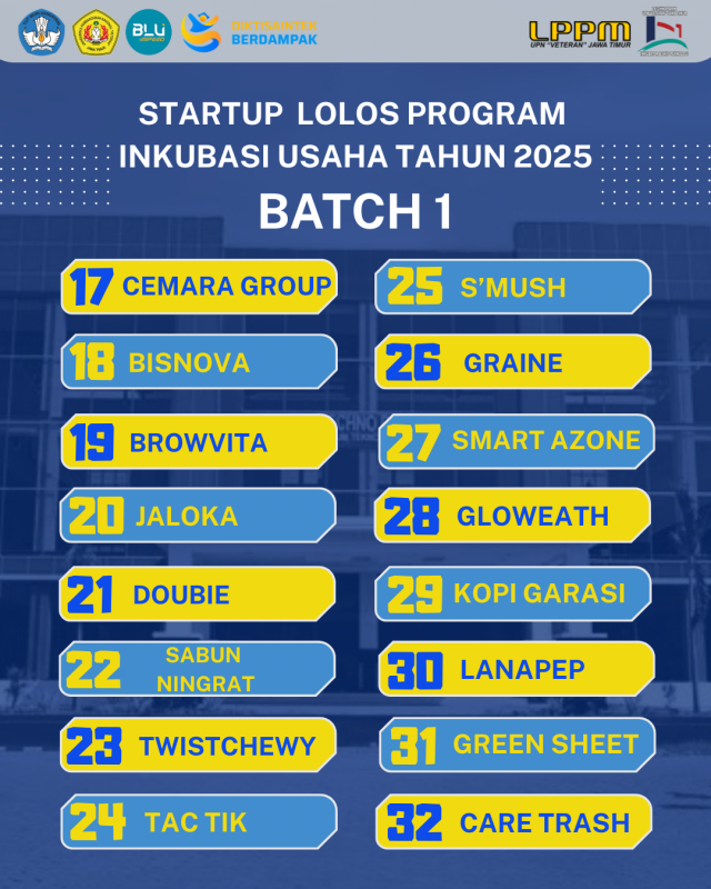 Selamat Kepada 35 Tenant Startup Binaan IBT Techopark LPPM UPN Veteran Jawa Timur Tahun 2025 Batch 1.