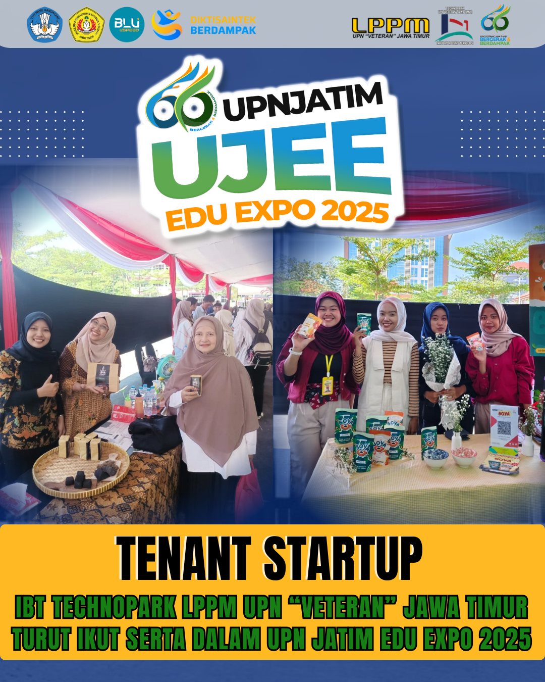 Dalam kesempatan kali ini juga. Startup IBT Technopark LPPM UPN Veteran Jawa Timur turut serta dalam kegiatan UJEE Tahun 2025 melalui bazar kewirausahaan mahasiswa, dengan berpartisipasinya 8 Tenant Startup IBT Technopark LPPM UPN Veteran Jawa Timur.